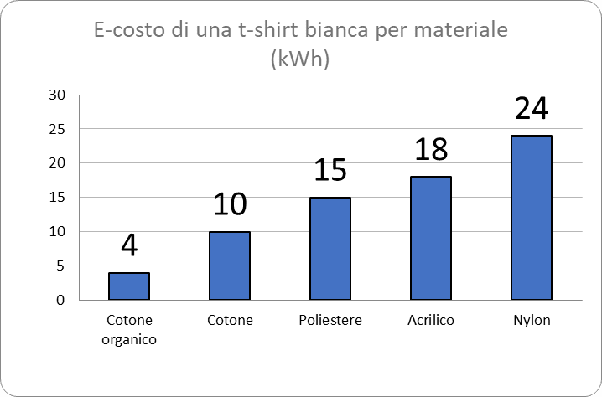 Una t-shirt bianca del peso di 250 grammi avrebbe quindi, a seconda del materiale, questi e-costi: